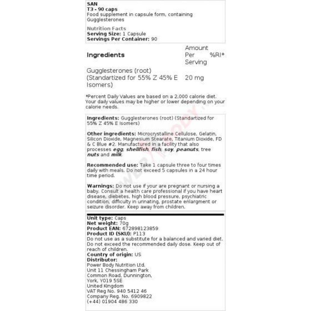 25 mg de guggulsteronas tres veces al día