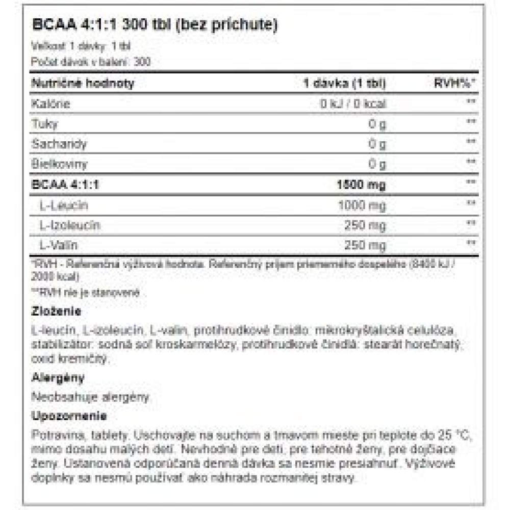 Especificaciones AMIX BCAA 4:1:1 Tablets AMIX