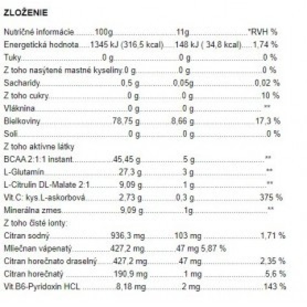 Especificaciones Androrganics Excellent BCAA Complex 440 g Androrganics