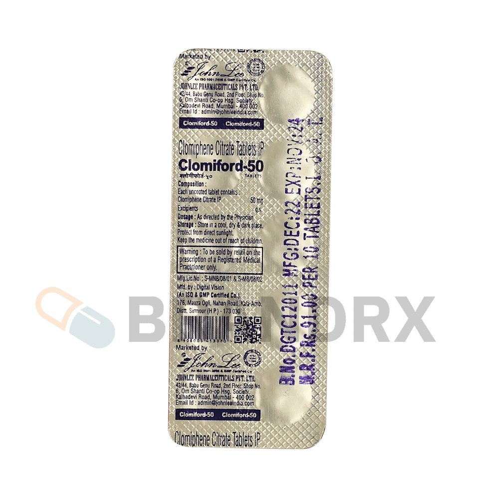 Especificaciones Clomiford 50 mg Johnlee Pharmaceuticals